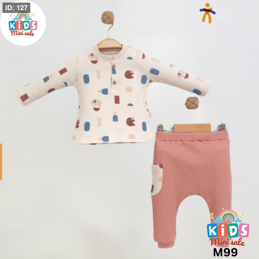 طقم قطني بناتي 2 قطعة بلوزة وبنطلون