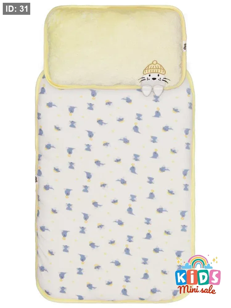 فرشة غيار مع مخدة لون اصفر مرسم
